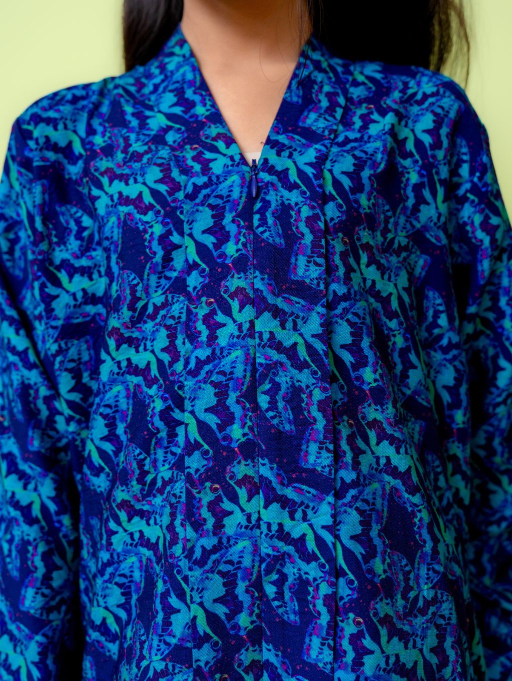 Blue & Orange - 80% Rayon, 20% Nylon (This garment is made from a naturally textured fabric that may appear wrinkled)