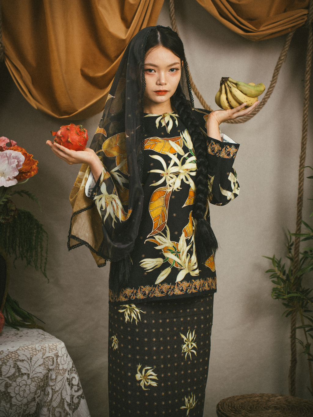 Cempaka Kurung - Hitam (with shawl)