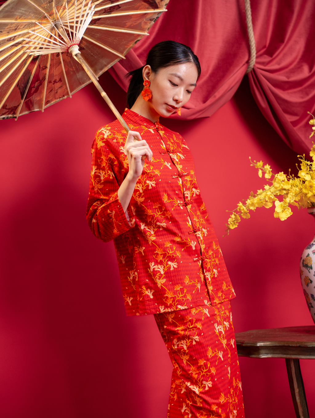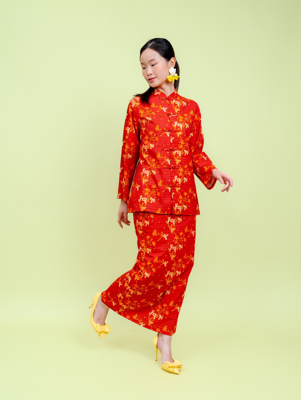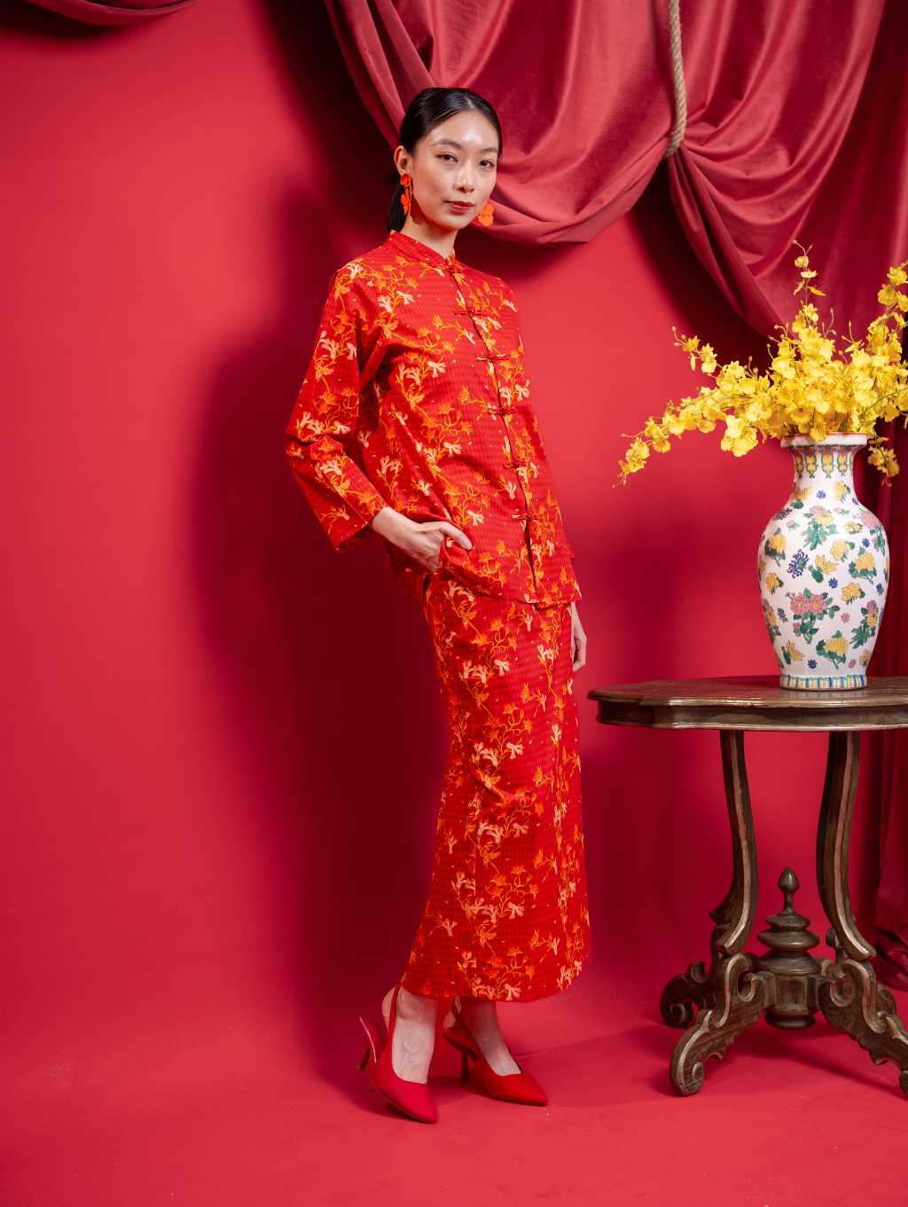 Mandarin Kurung - Red Blossom