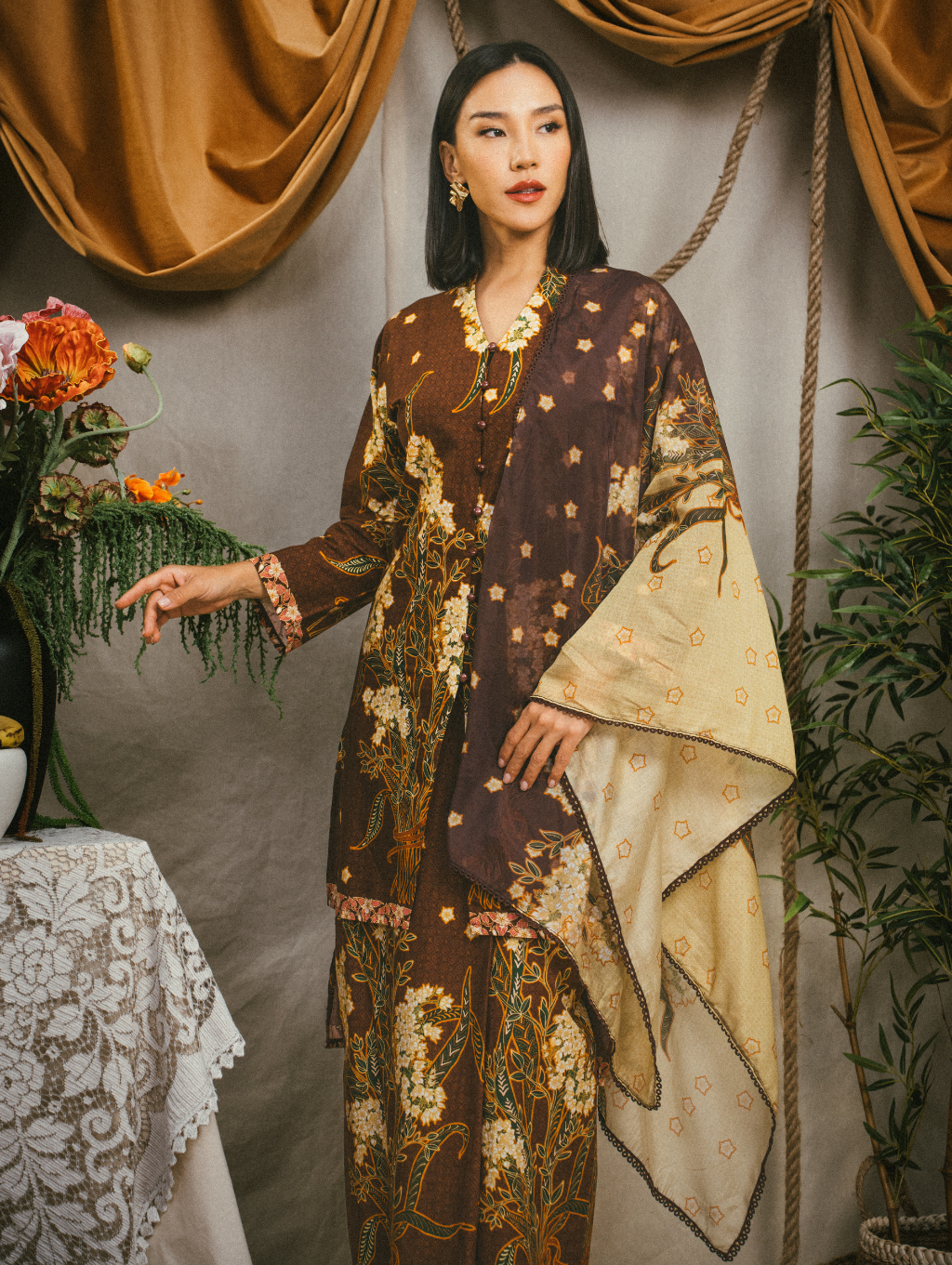 Mega Maxi Kebaya - Kesidang Brown (with shawl)