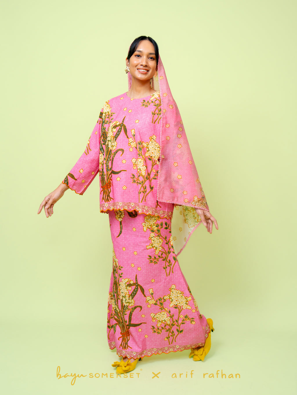 Gina Oversized Kurung - Kesidang Merah Jambu (with shawl)